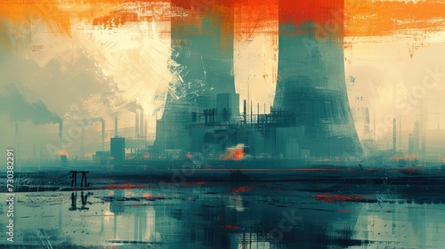 © Bargais, Obraz premium Painting of nuclear power plant.