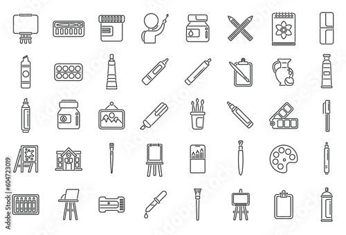 Fototapeta premium Painting school icons set outline vector. Class student. Graduate study