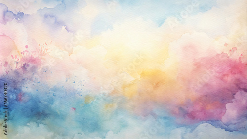 Fototapeta premium Painting sky filled with fluffy clouds and bright sunlight over the sea on a...