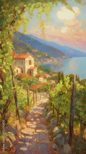 © Rawpixel.com, Fototapeta premium Painting vineyard architecture countryside.