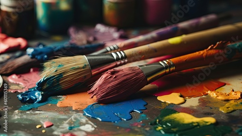 © Png - Video - Photo, Obraz premium paints and brushes , Generative AI