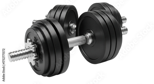 © Ukilats, Naklejka premium Pair Of Adjustable Dumbbells On Black Background For Fitness