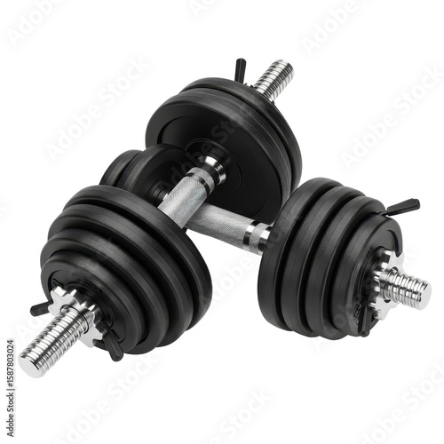 © Muniba, Naklejka premium Pair of Adjustable Gym Dumbbells for Weight Training Isolated Product Shot