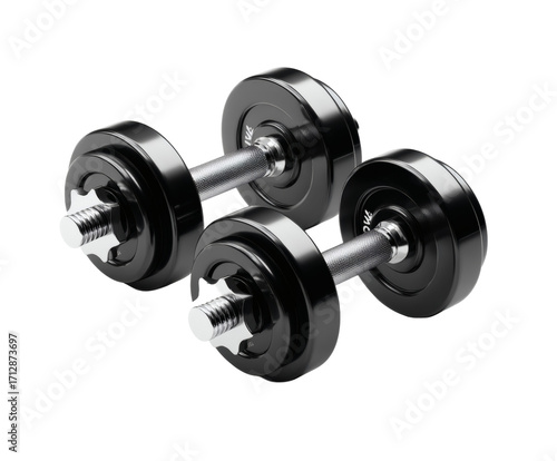 © Marin Studio, Naklejka premium Pair of black dumbbells on a dark background