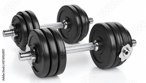 © Ginok, Naklejka premium Pair of black dumbbells on white background