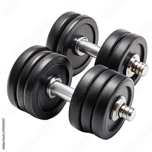 © MD USUB BISWAS, Fototapeta premium Pair of Black Rubber Encased Hand Gym Dumbbells isolated on transparent background.