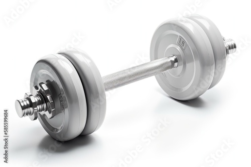 © AkuAku, Naklejka premium pair of chrome dumbbells on a clean white background. Generative AI