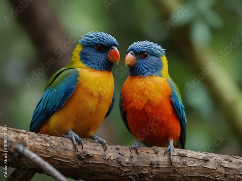 © claudunia, Obraz premium Pair of colorful birds sitting together.