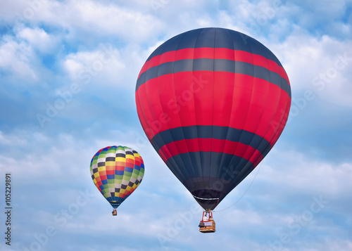 Fototapeta premium Pair Of Colorful Hot Air Balloon in Cloudy Blue Sky