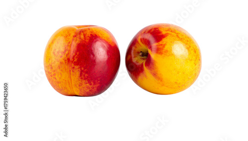 © MstMukta, Fototapeta premium Pair of colorful nectarines with glossy skin, isolated on transparent background