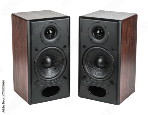 © Sirsak, Obraz premium Pair of dark brown wooden speakers