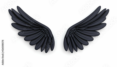 Naklejka premium Pair of dark feathered wings spread on a white background, for use in design