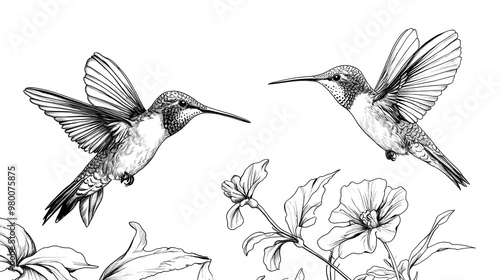 © LemonellArt, Fototapeta premium Pair of Hummingbirds Hovering Near a Flower