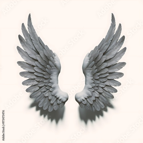 Obraz premium Pair of isolated angel wings with 3D feathers on white background, 3D...