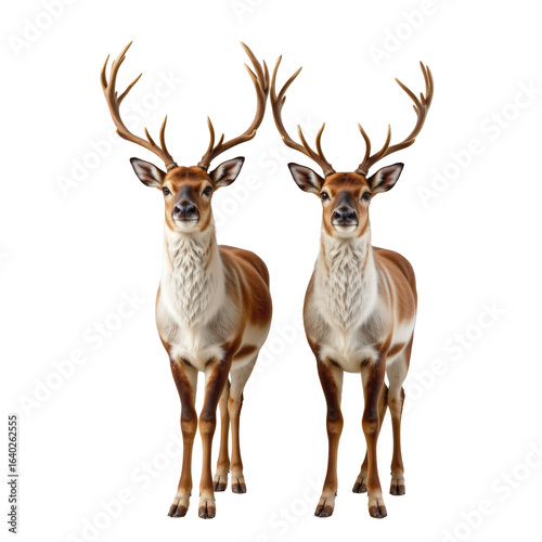 Fototapeta premium Pair of Majestic Reindeer with Elegant Antlers in Natural Setting
