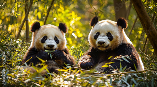 Obraz premium Pair of Pandas Relaxing in a Bamboo Grove