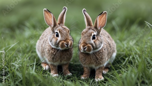 © Cyber Shutter, Fototapeta premium Pair of rabbits on lush green grass