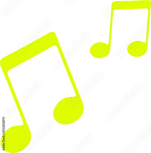 © vectorfusionart, Naklejka premium Pair of stylized lime green eighth notes is floating on transparent background in vector graphic