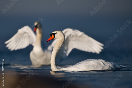 © Thomas, Fototapeta premium pair of swans in the morning sun