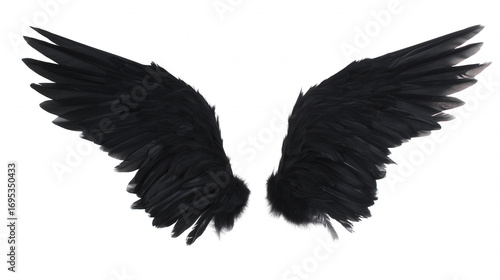 © Matt, Obraz premium Pair of symmetrical black feathered wings on transparent background