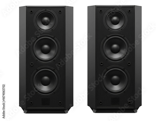 © Bibekananda, Fototapeta premium Pair of tall black tower speakers isolated on transparent background