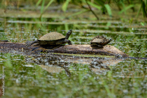 Obraz premium Pair Of Turtles Perched On Log In Water-1143