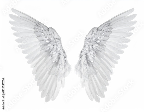 © Lokal, Obraz premium Pair of white angel wings against a white background