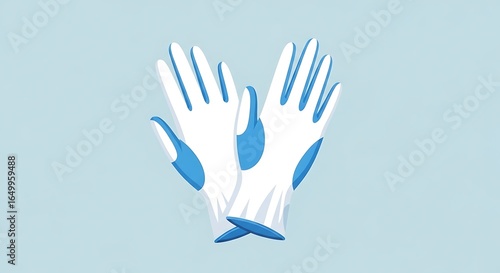 © Ganang, Obraz premium Pair of white disposable gloves with blue accents.
