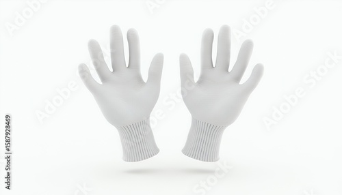 © Rohmah, Fototapeta premium Pair of White Gloves with Ribbed Cuffs - 3D Render