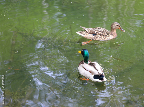 Obraz premium pair of wild duck on the pond close up