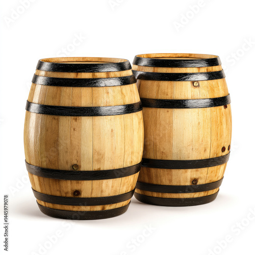 Obraz premium Pair of wooden barrels against white background