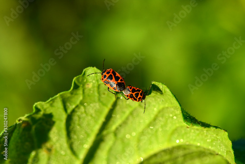 Fototapeta premium Pairless bugs inhabiting wild plants, macro close-up