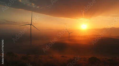 © VicPhoto, Fototapeta premium Paisaje con aerogeneradores o molinos de viento