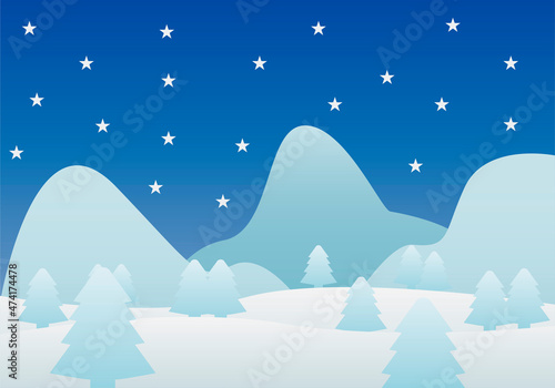 Fototapeta premium Paisaje de montaña nevado con pinos en la noche.