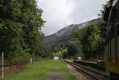 © Virginia, Fototapeta premium Paisaje ferroviario en día nublado