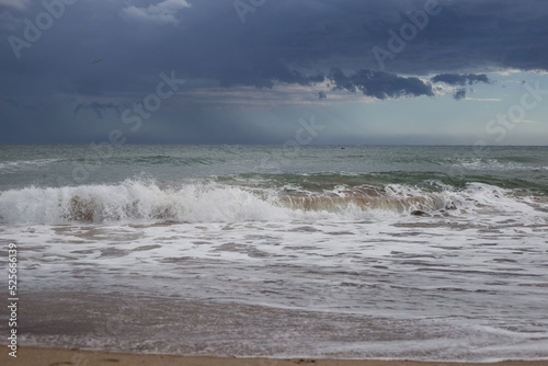 Fototapeta premium Paisaje Mar, playa, tormenta, olas, nubes, espuma