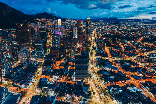 © Andres Mogollon, Fototapeta premium Paisaje urbano nocturno de la ciudad de Bogotá, capital del pais Latinoamericano: Colombia.
