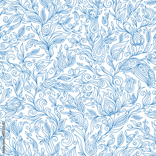 © photo-nuke, Obraz premium Paisley Flowers Design Elements Seamless Pattern