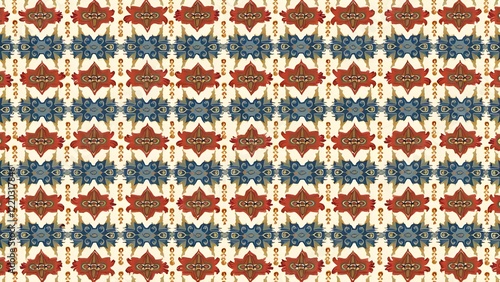© Hina, Fototapeta premium Paisley, Lotus, and Checkerboard Pattern Wallpaper Vibrant Orange and Indigo with Gold Accents on Cream