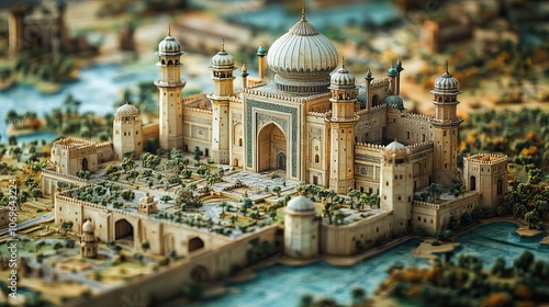© Ta, Obraz premium Pakistan Day monuments placed on a country map, celebrating key national events with visual significance.