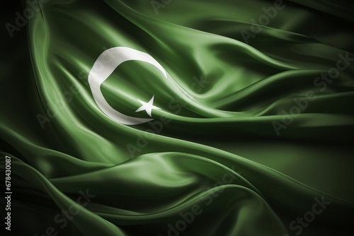 Obraz premium Pakistan independence day celebration waving flag with fabric texture, copy...