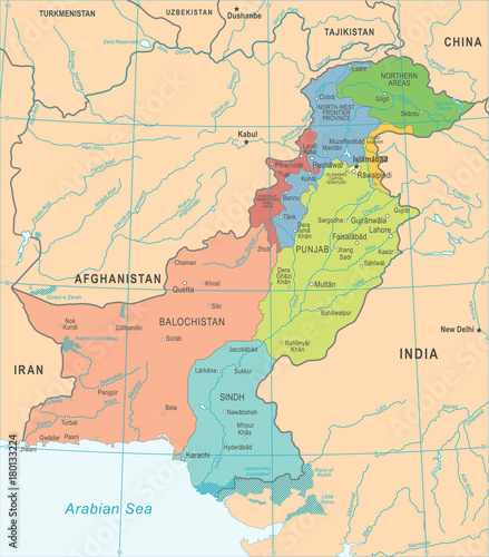© Porcupen, Fototapeta premium Pakistan Map - Detailed Vector Illustration