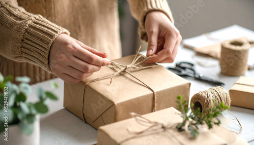 Fototapeta premium Pakowanie prezentów ekologiczne