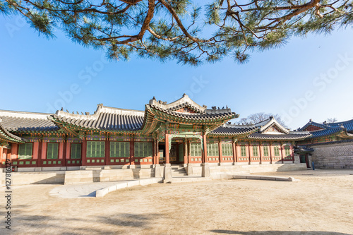 © orpheus26, Obraz premium Pałac Changdeokgung i punkt orientacyjny Huwon w Seulu, Korea Południowa