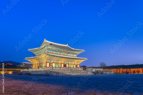 Obraz premium Pałac Gyeongbokgung nocą, Seul, Korea Południowa