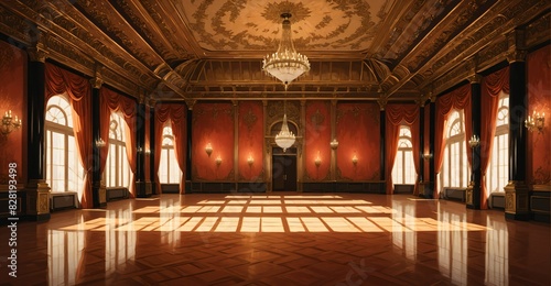 © Shane Sparrow, Obraz premium Palace Ballroom Theatre Hall. Abandoned amphitheater auditorium room. Royal dance hall in noble mansion interior.
