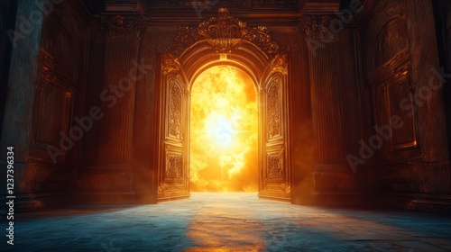 © cusniatul, Fototapeta premium Palace doorway, fire, heaven, fantasy, game background