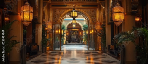 Fototapeta premium Palace hallway grand arch, lanterns, courtyard