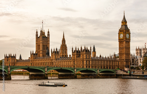 Fototapeta premium Palace of Westminster and Elizabeth Tower with Westminster Bridge over River...