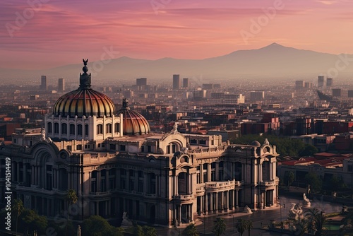 © damar, Fototapeta premium Palace with dome, city skyline, sunset sky.